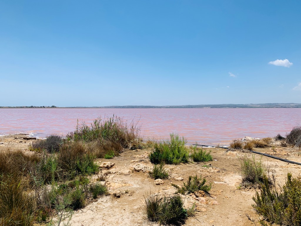 Lorsqu’on me demandait ce que j’avais le plus hâte de voir en Espagne, outre les magnifiques paysages, je répondais les salines de Torrevieja dont l’eau est rose!!