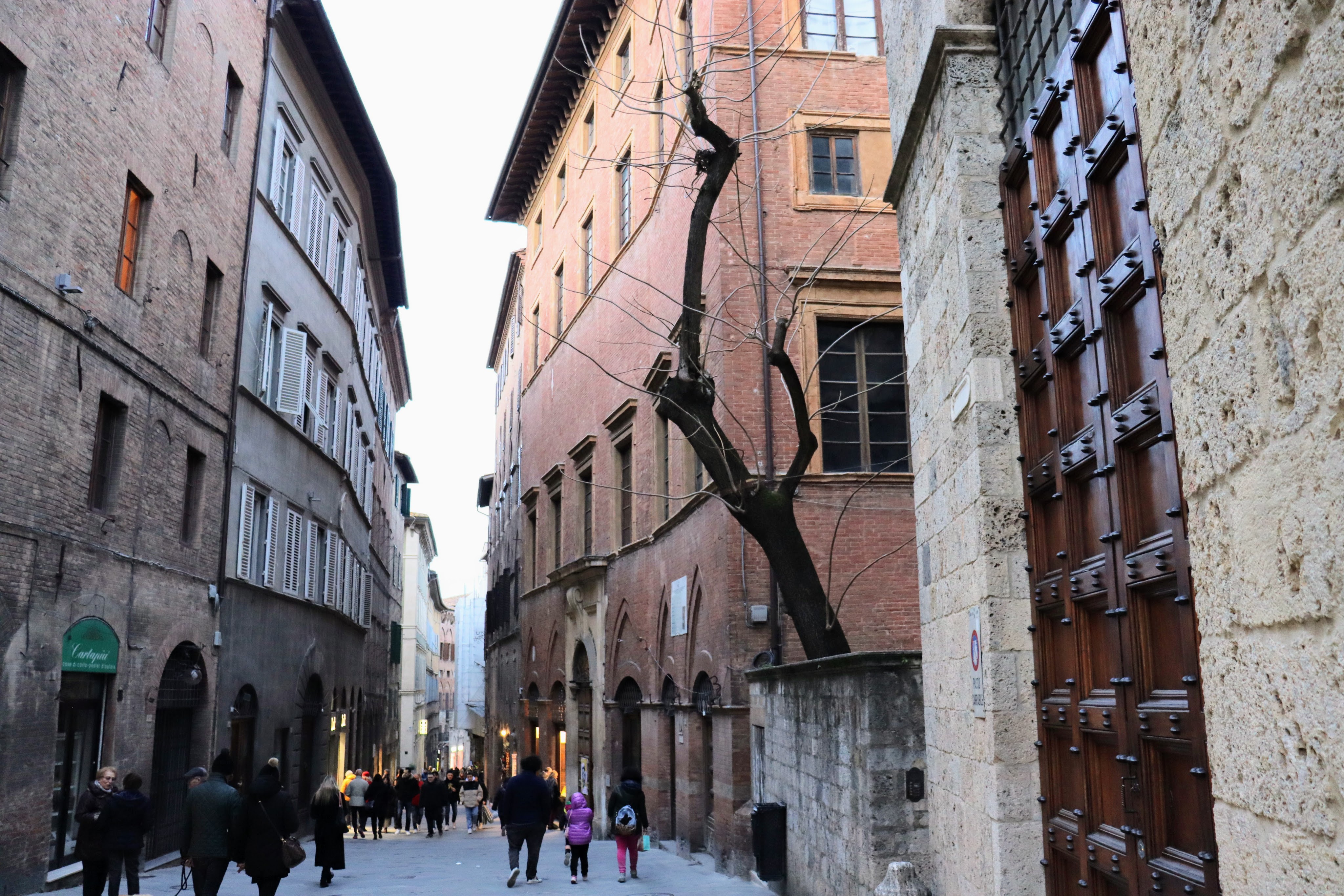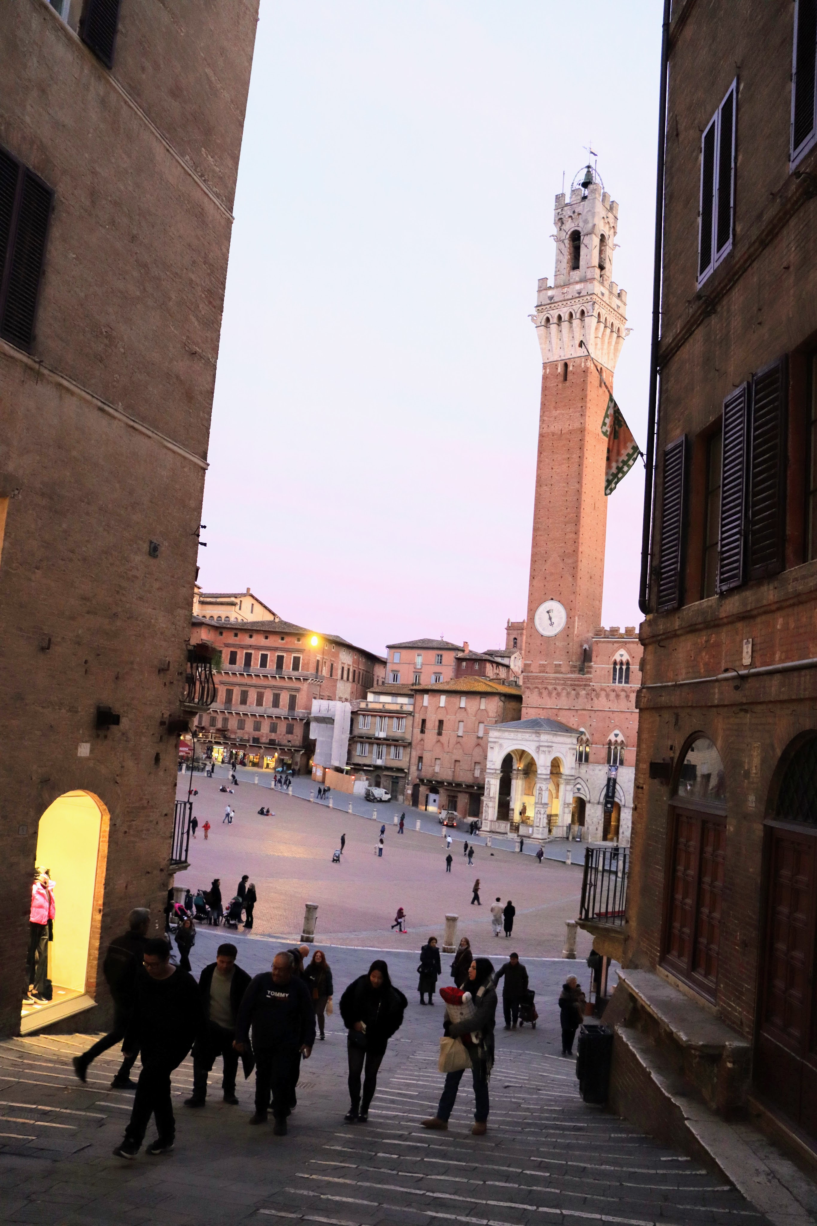 Sienne, ville située en Toscane, au centre de l’Italie, se caractérise par ses bâtiments médiévaux en briques. Sur la Piazza del Campo, la place centrale en forme de coquillage, se dressent le Palazzo Pubblico, l’hôtel de ville gothique, et la Torre del Mangia, tour étroite du XIVe siècle offrant une vue panoramique depuis son sommet en travertin blanc. Les 17 « contrades » (quartiers) historiques de la ville s’articulent autour de la piazza. Pour y accéder, un funiculaire est disponible car c’est très très haut. Par le funiculaire, on emprunte 7 escaliers roulants.
