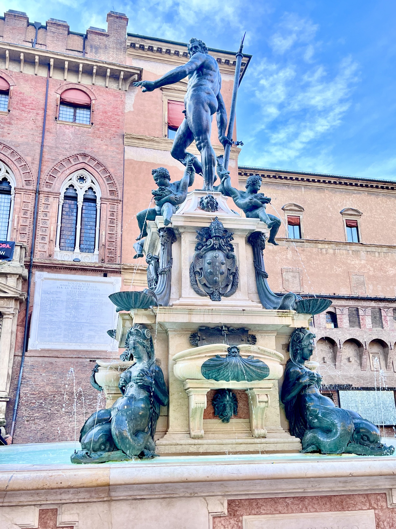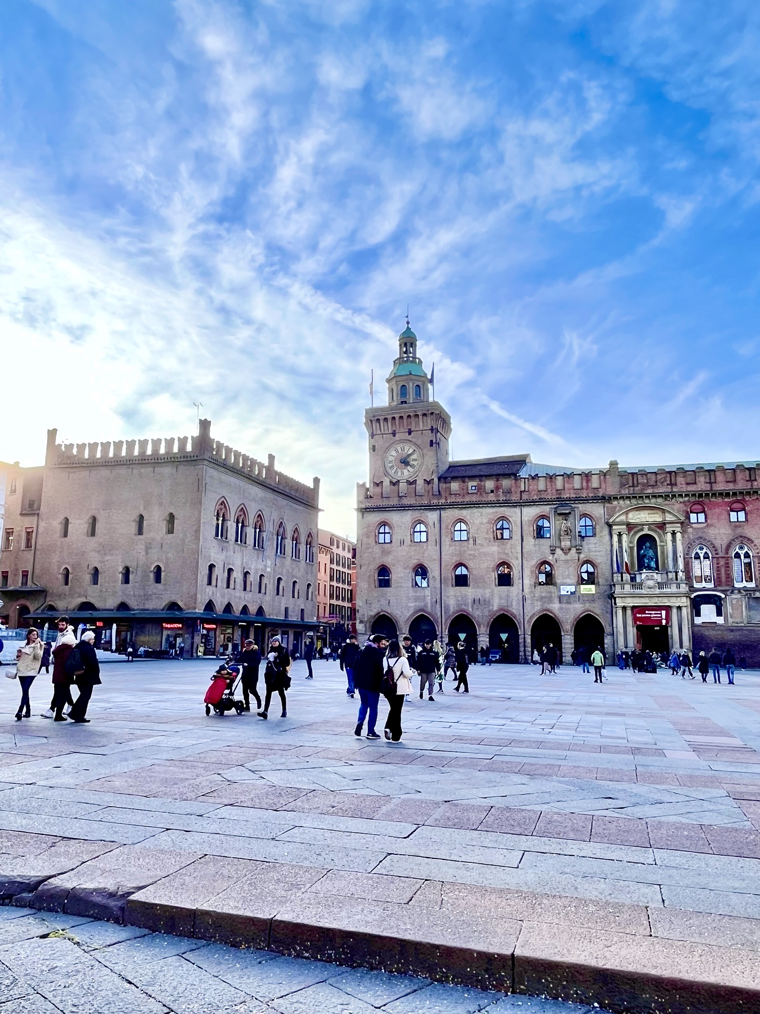 la Torre dell’Orologio et le Palazzo d’Accursio abritant l’hôtel de ville. Ces deux bâtiments donnent quant à eux sur la Fontana del Nettuno, une fontaine dédiée au dieu romain Neptune.