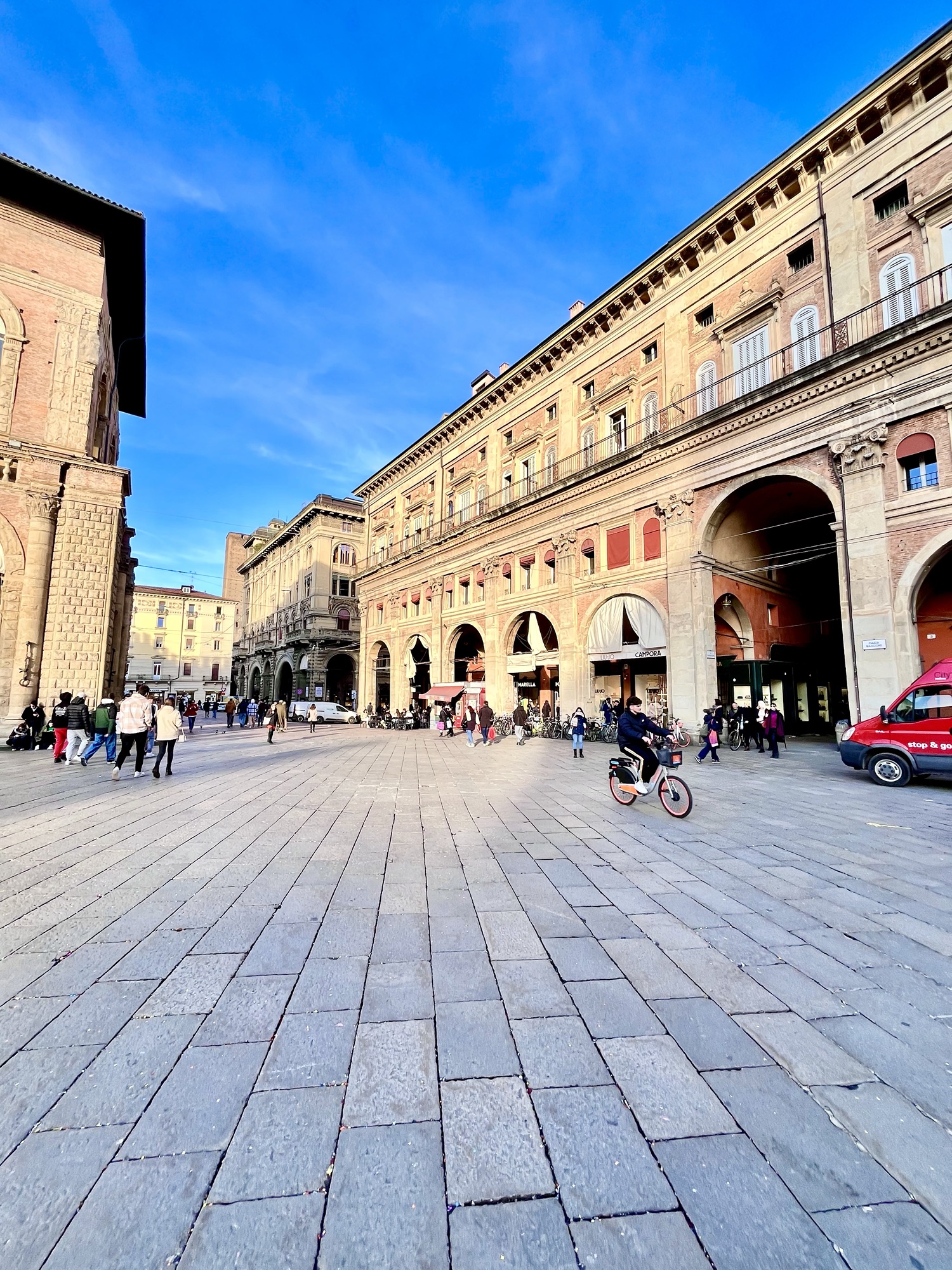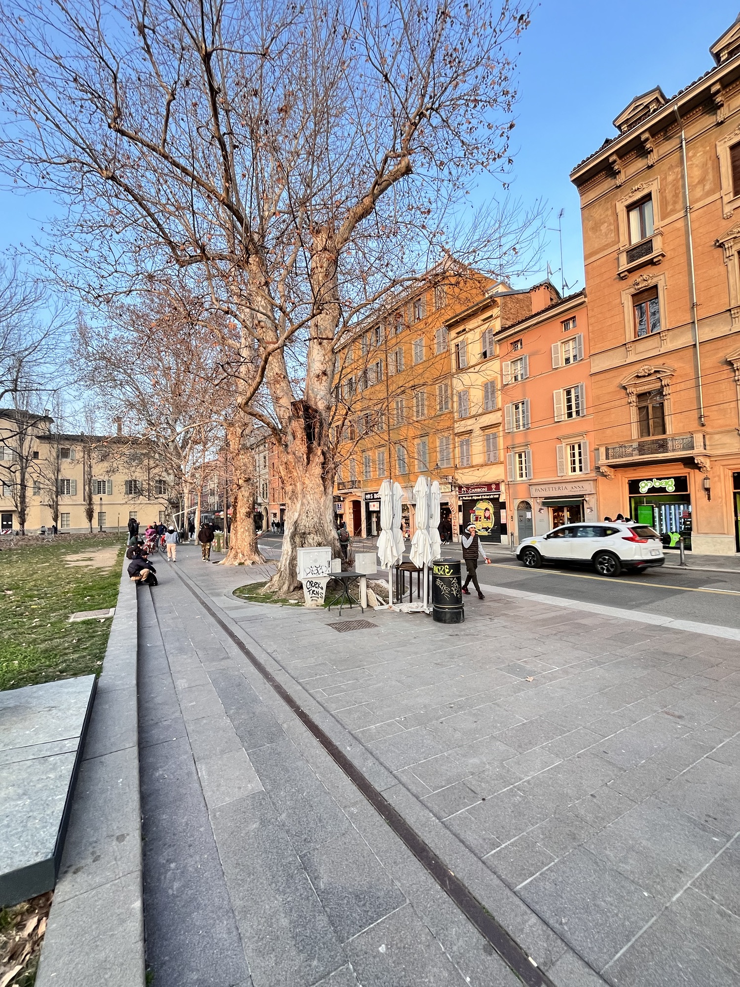 Ici, j’ai un stationnement juste devant ma porte, sans frais supplémentaires…je suis contente. Mais je suis à 20 minutes du centre historique de Bologne. Je suis à l’aise avec ça, car je suis près de l’autoroute et j’ai beaucoup à voir en dehors de la ville.