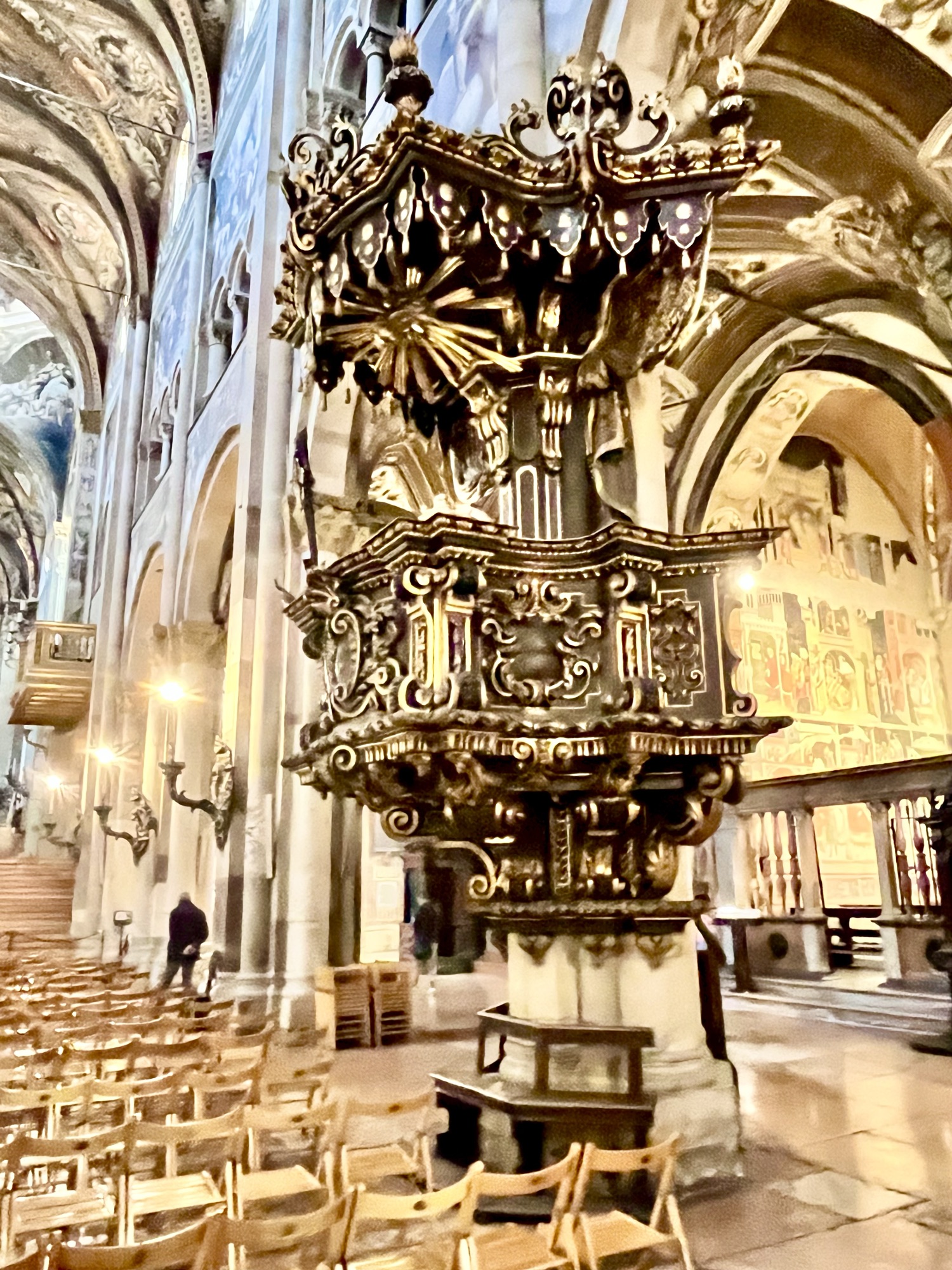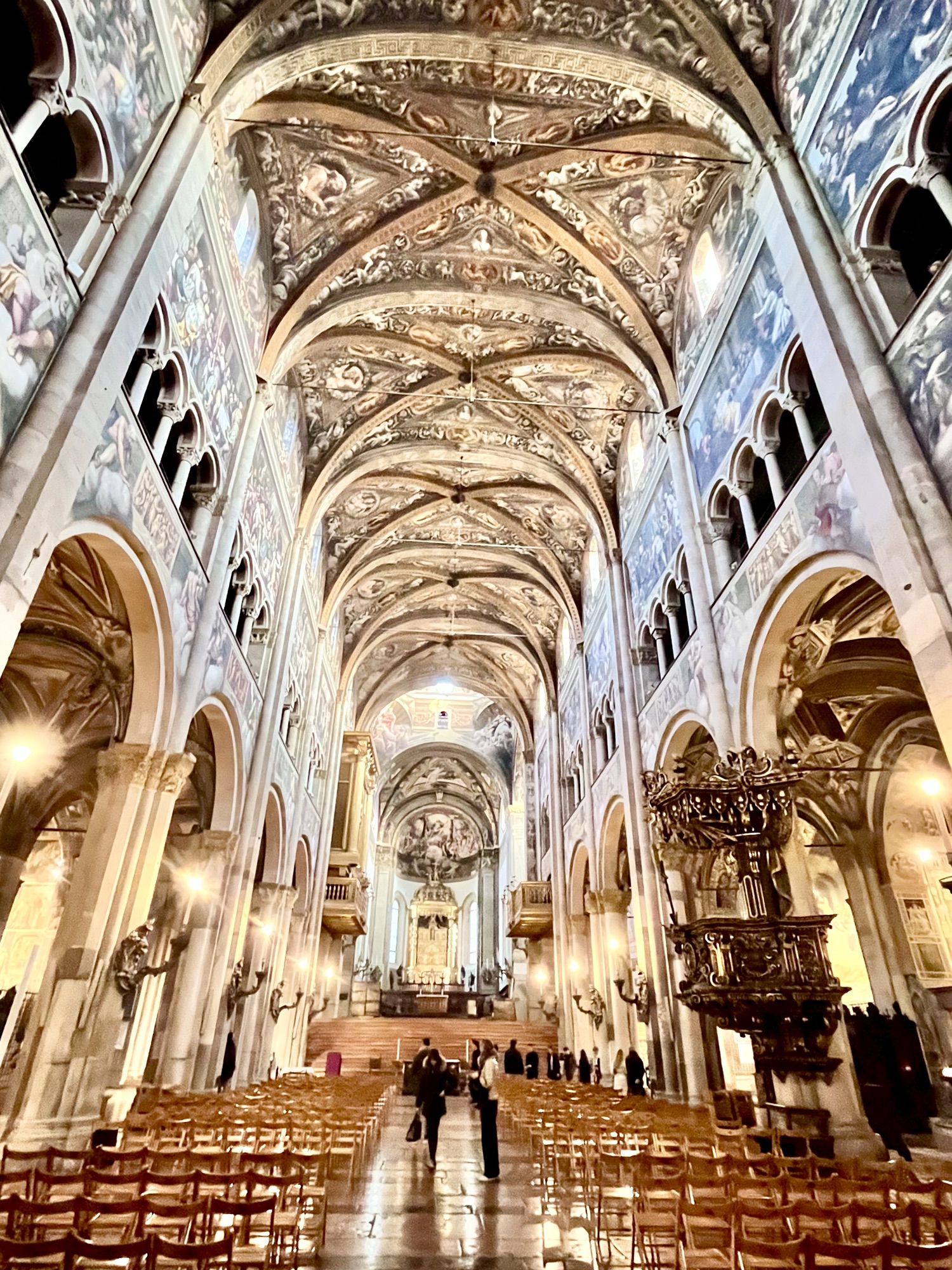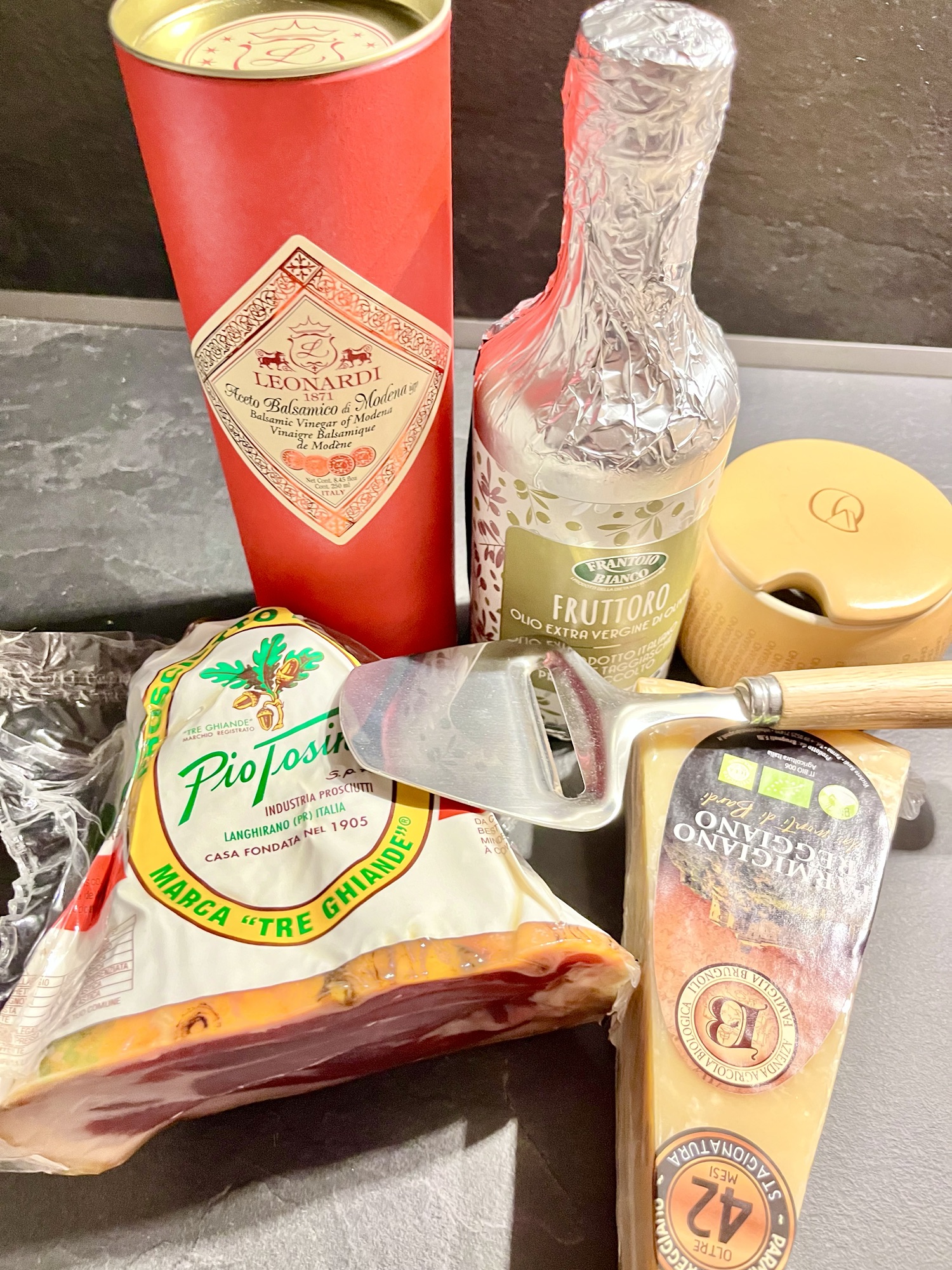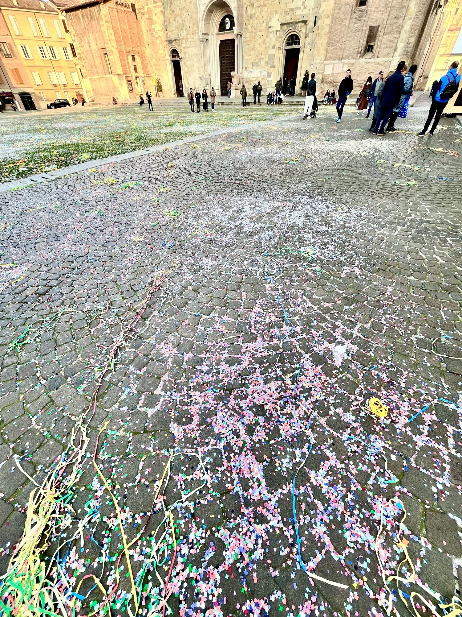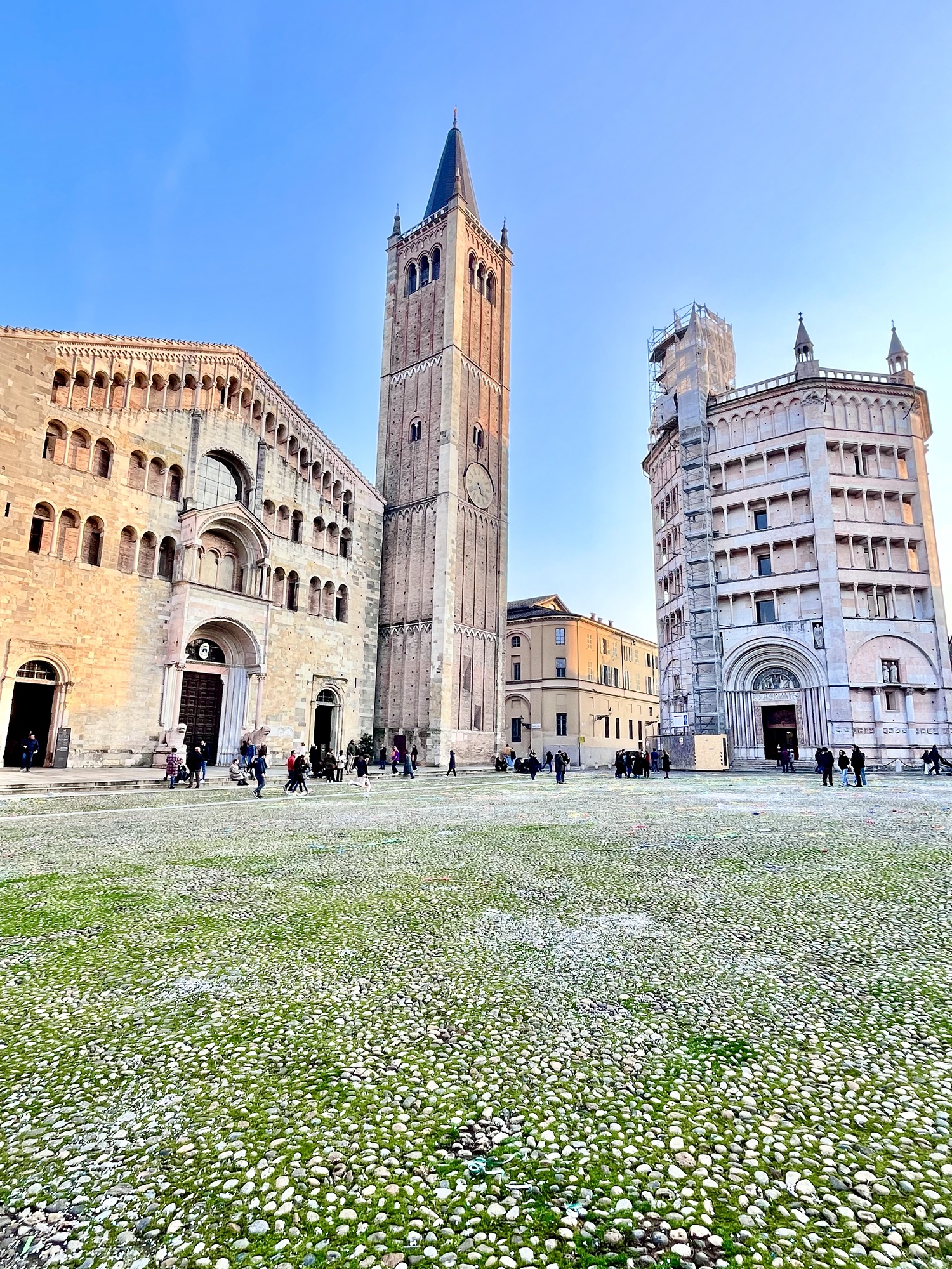 La ville de Parme était importante pour moi dans ce voyage en Italie. En fait…depuis plusieurs années, je rigole en répétant à mon amoureux que j’irai manger du jambon de Parme et du Parmigiano directement à Parme. Ça le fait bien rire quand je le mets dans les confidences de ce type de projets auxquels je pense…ils n’ont pas le même sens pour lui. Aujourd’hui, le 17 février 2024…je suis venue manger du jambon de Parme à Parme, et bien sûr dans mon coffre…du « jamon di Parma » et du « parmigiano reggiano » pour le partager avec lui, dans quelques jours. Il sera convaincu (lui aussi) qu’il est meilleur à Parme que partout ailleurs dans le monde…même s’il est disponible partout!