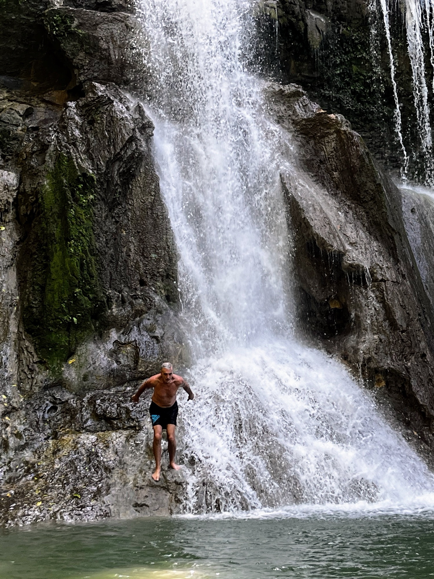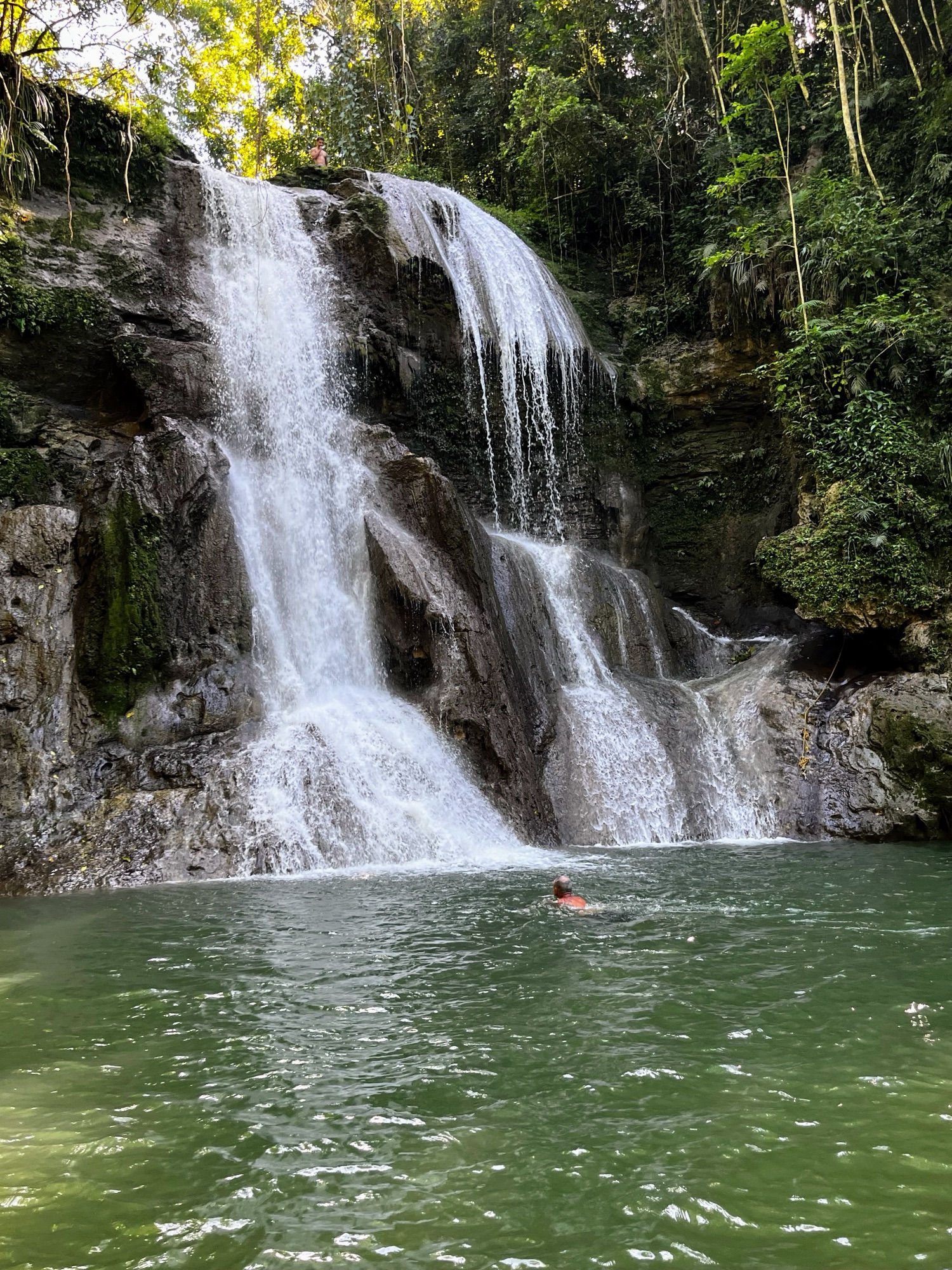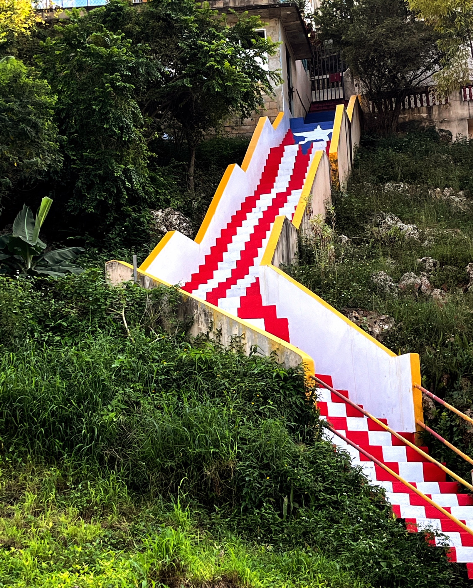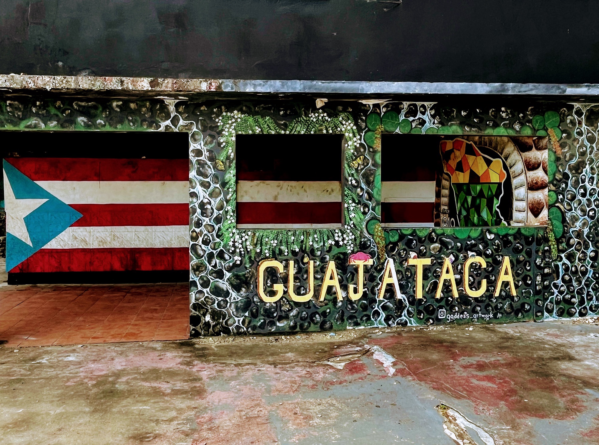 Well, ici…c’est le voyage qui était fabuleux. Non les destinations. De notre petite bourgade (Isabela), nous devions compter 2 heures de route pour s’y rendre, au travers la forêt tropicale. Les routes intensément sinueuses qui semblent être à une voie, mais qui sont à deux voies. Avec la montagne et les ravins sans fin, sans garde fou, sans rien! L’objectif pour Guayanilla visait la brocante (la seule sur l’île) qui se tient le dimanche. Parce qu’à chaque voyage, je cherche le crucifix qui s’ajoutera à ma collection, et je les préfère avec leur histoire. Quelle déception! Une brocante de petites babioles neuves ensachées dans du plastique encore plus cheap et des parfums bons marchés! Mais, le petit snack pris était succulent et surtout, il a servi à me caller et à faire passer la nausée du trajet exceptionnel.