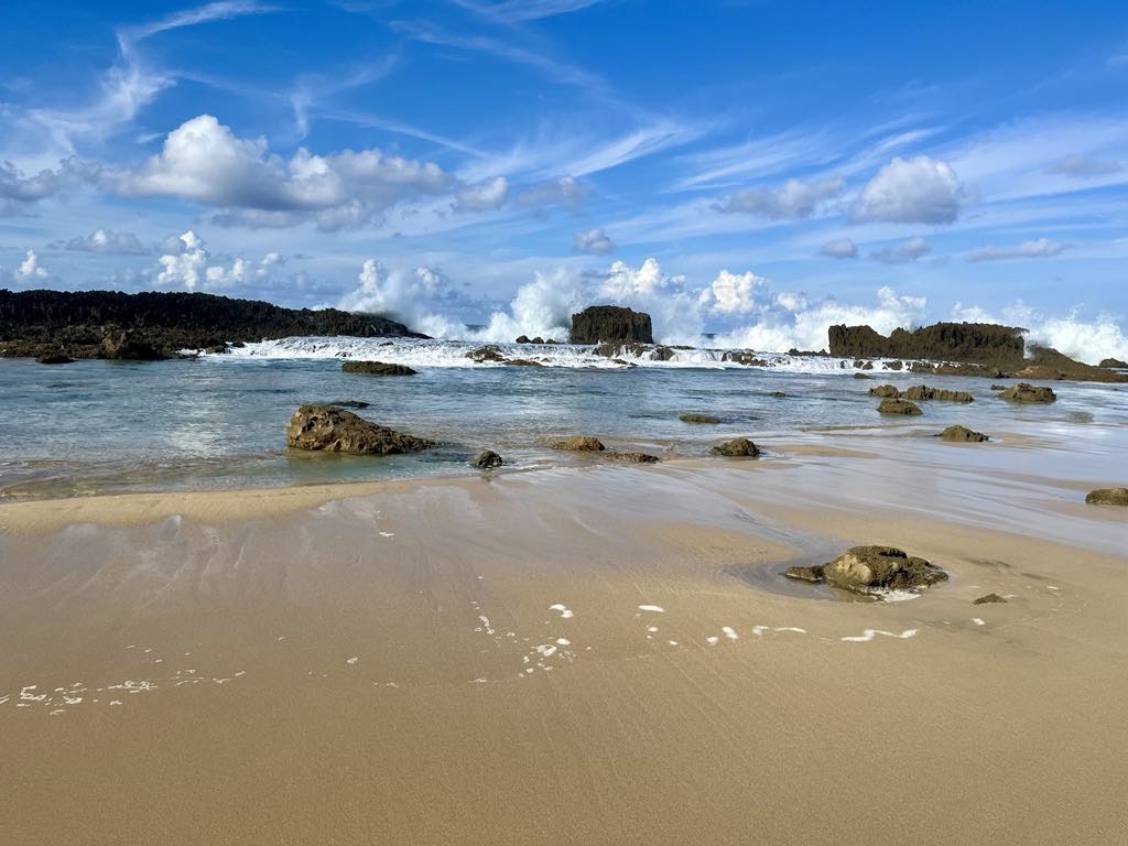 Les plages sont en nombre…pour le surf et le paddle surf. Pour la baignade en eau plus calme c’est une autre histoire! À quelques endroits sur la côte, les récifs ont formé de beaux lagons qui permettent la baignade, et en surplus, le spectacle des vagues qui s’y frappent est fabuleux!