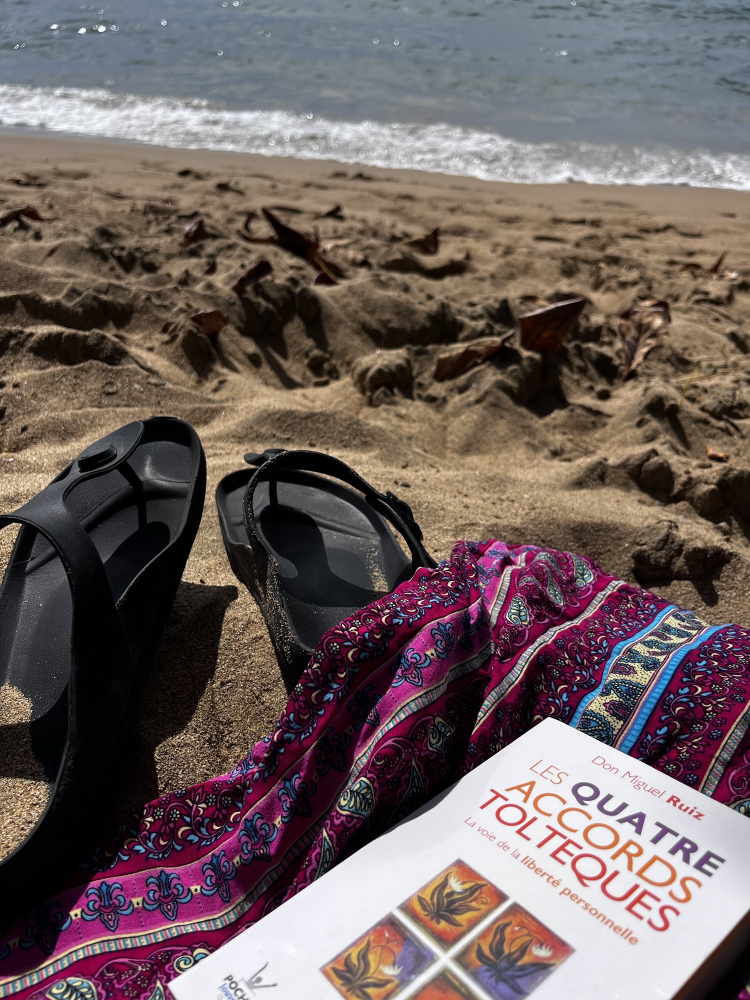 Pour ce voyage, dans mon bagage…ces livres qui m’inspirent le bonheur. J’aime bien débuter mes journées en y allant au hasard et faire confiance que ce que je lirai, c’est ce dont j’ai besoin pour ma journée. Avec ses livres qui se relisent à l’infini, toujours par petites sections…cette fois ci, j’avais avec moi « Le pouvoir du moment présent » et « Les 4 accords toltèques ».