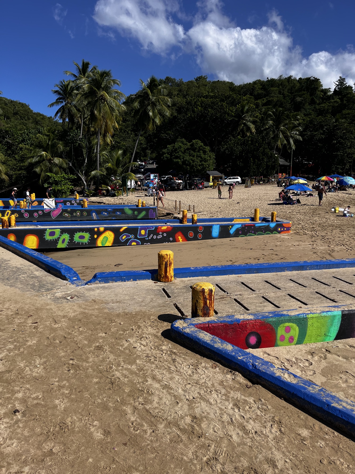 Cette adorable plage ressemble à un arc-en-ciel géant ! À chaque coin de rue, des bâtiments colorés, des drapeaux et des peintures murales.