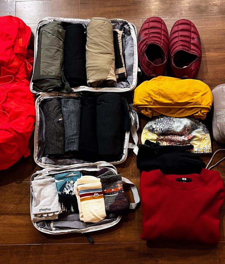 Je n’étais pas très fan du « Technical wear » jusqu’à ce que je considère marcher plus de 20 km par jour avec ma valise complète sur le dos. La majorité des guides consultés suggèrent une liste très minimaliste de vêtements à apporter