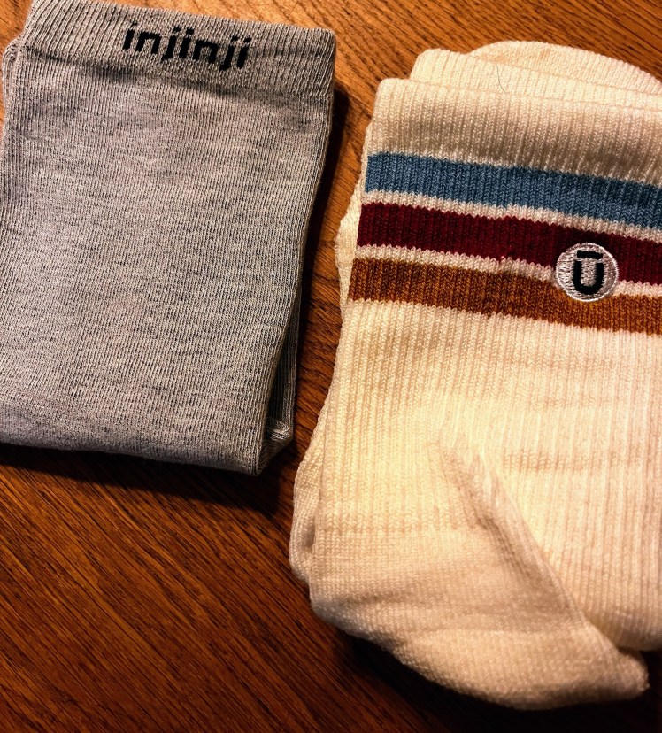 - 3 paires de chaussettes de randonnée. Je me suis beaucoup renseignée sur les chaussettes…pour mes pieds fragiles. Les liner « injinji » feraient toute la différence! Je m’en suis procurée 2 paires. J’aime beaucoup la marque « outway » pour les chaussettes.