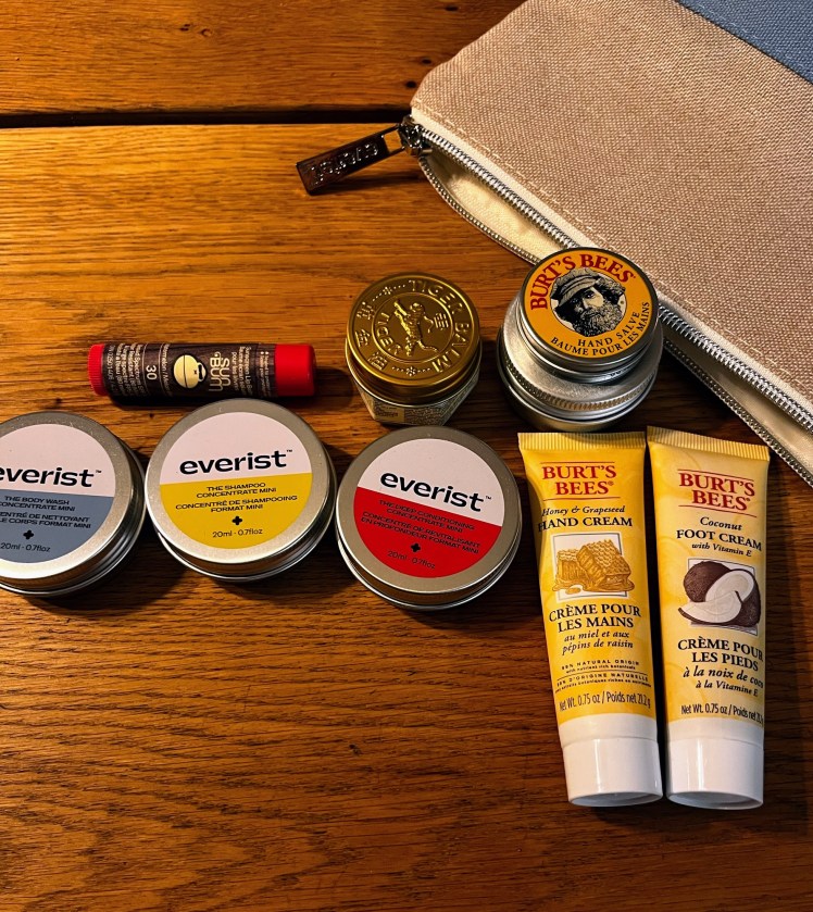 - Shampoing, revitalisant et gel douche en baume de « Everist » (concentrés en contenant pratique 100% bio). J’adore!