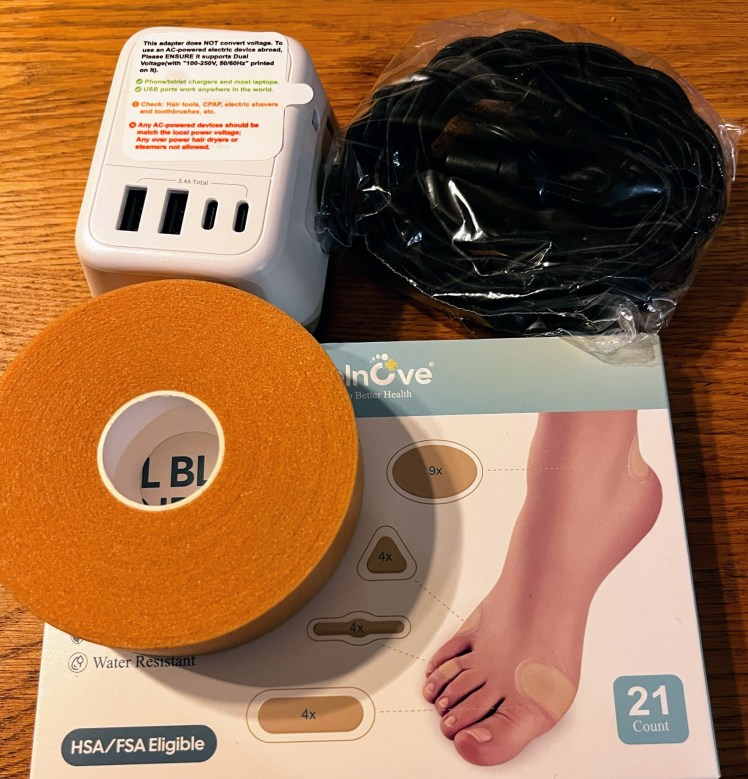 Les bâtons de marche. Pour mon chéri, c’est un non catégorique. Quant à moi, j’hésite encore à les prendre ou non. Il faut vérifier avec la compagnie aérienne pour l’autorisation de cet équipement en cabine. Bref, c’est à voir.
