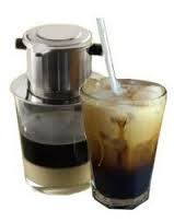 La saveur profonde de café vietnamien est renforcée en utilisant le lait condensé sucré comme un crémier et un édulcorant, par un processus de brassage à la tasse, un rituel au Vietnam. Le café moulu est placé dans un filtre spécial en métal, qui est mis au sommet d’une tasse remplie d’une généreuse quantité de lait condensé.